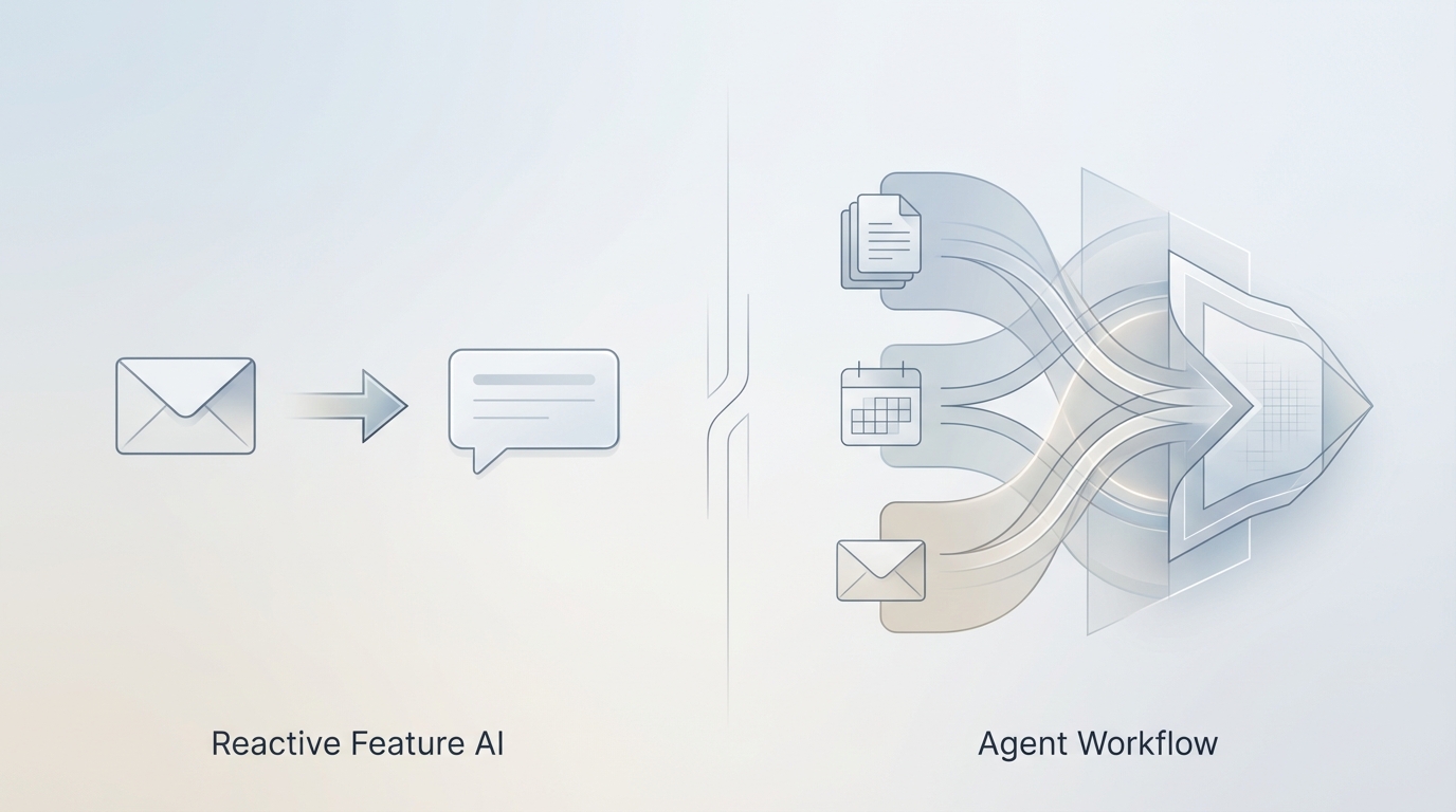 Feature AI reduces friction in the moment of composition. Agent AI reduces friction before composition begins.